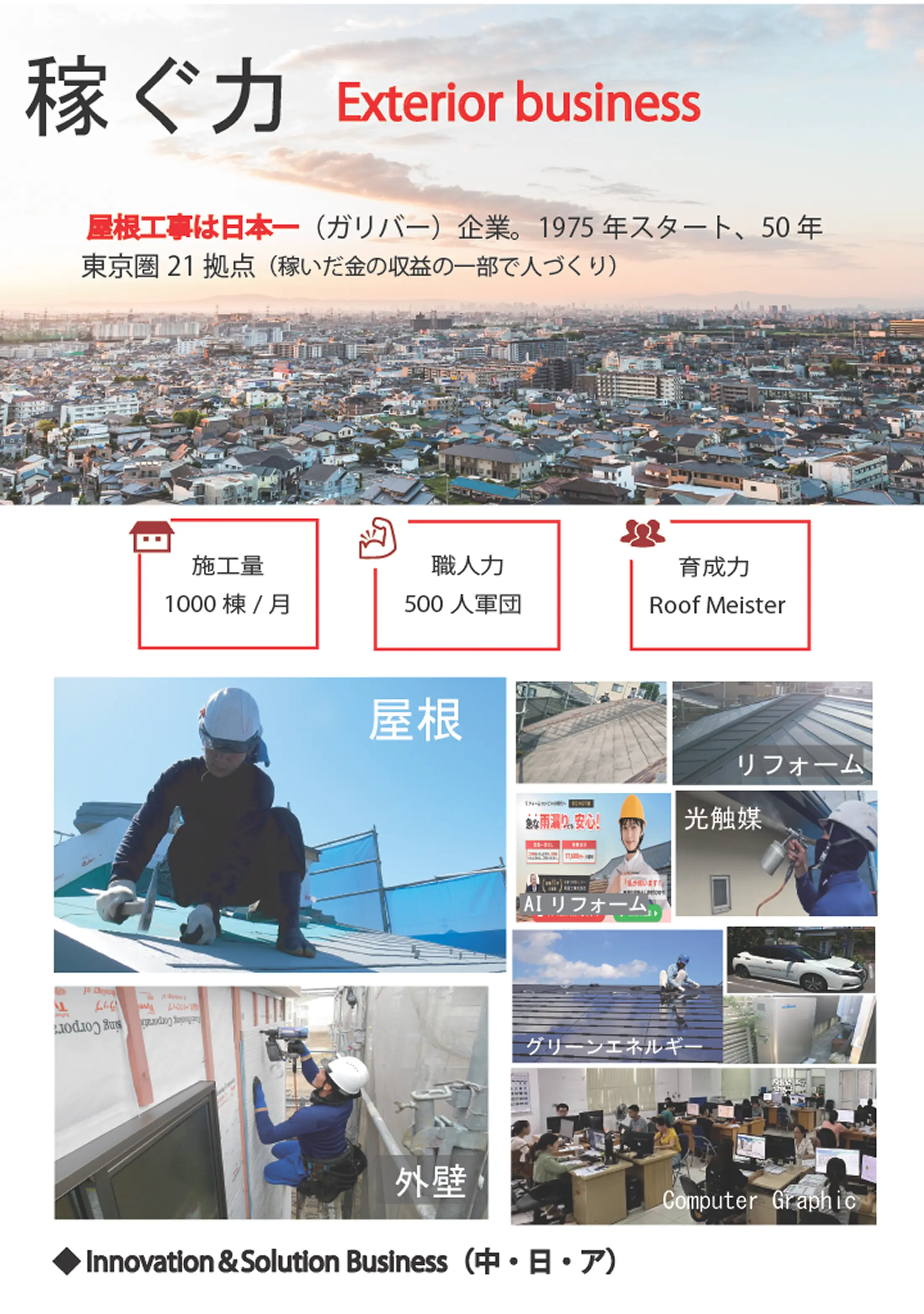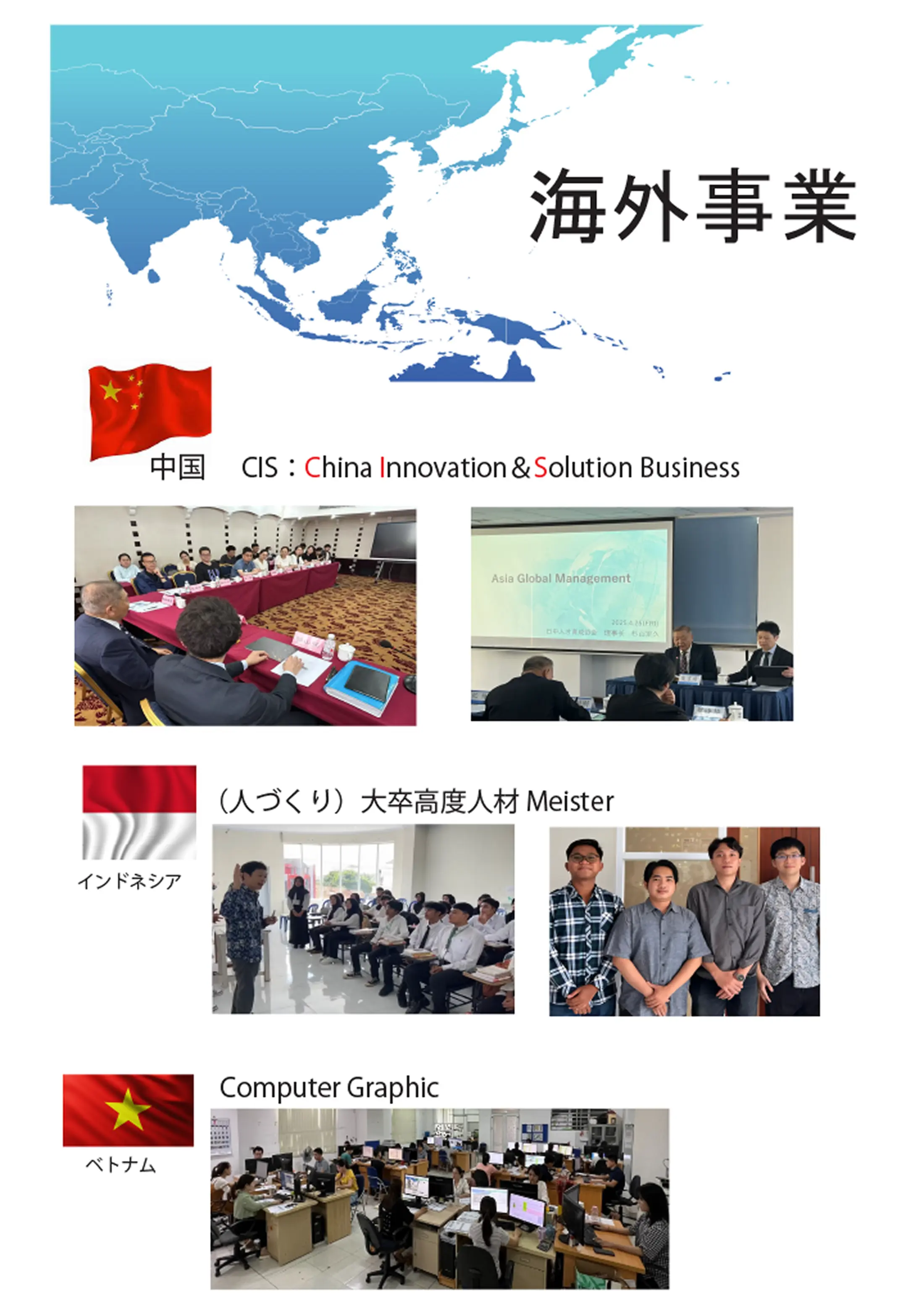 | 事業内容 | 1:総合外装事業 / 2:アジア人材育成&活用事業 |