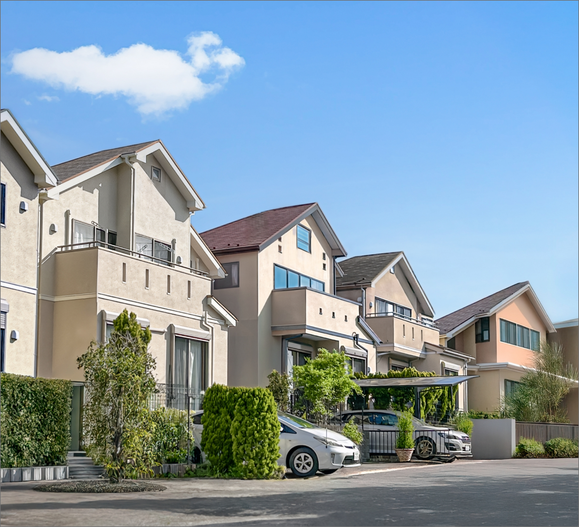 南富士の「総合外装事業」では、足場が必要な屋根・外壁・雨樋工事をお取引先ハウスメーカー様より一手に受注。3点セットで施工を行い、外装のトータル管理で請け負っています。施工の段取りや連携をスムーズに行え、工期短縮にも貢献しています。日本の高性能・高品質な住宅の建材や技術を現地ハウスメーカー、設計事務所へご提供。