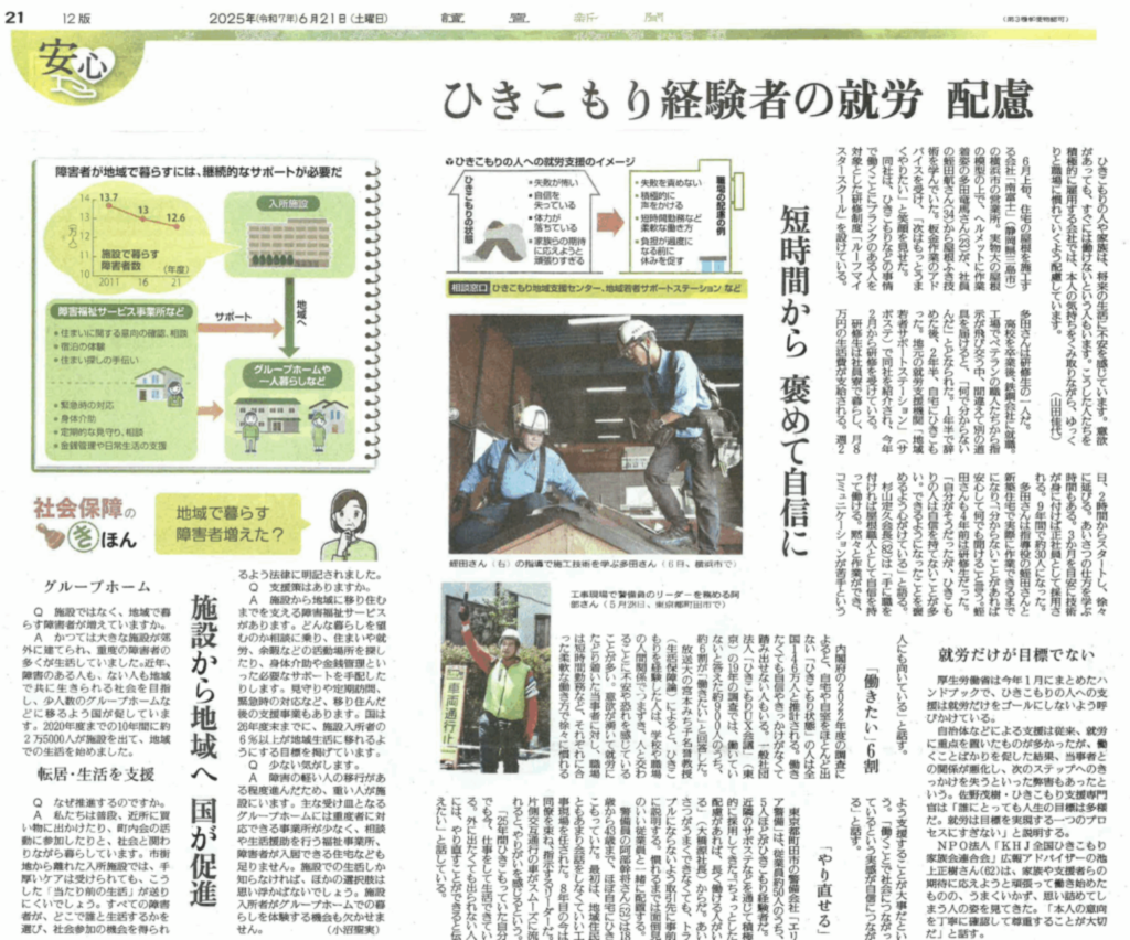 弊社のニート ひきこもり仕事チャレンジ( 屋根職人養成プログラム)“ルーフマイスタースクール”の記事が掲載されました。